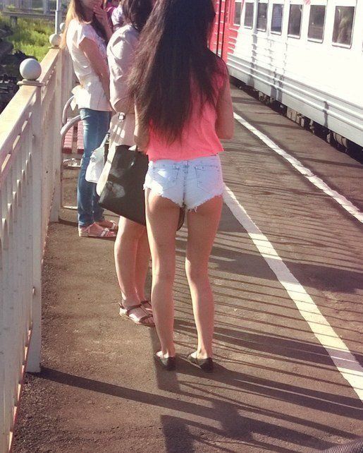 Шикарные задницы в джинсовых шортах на улице