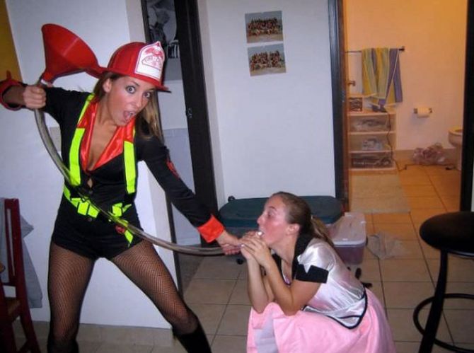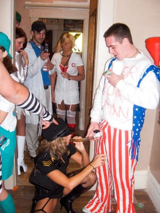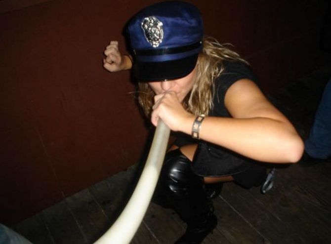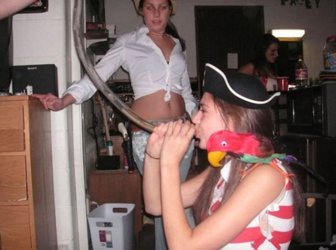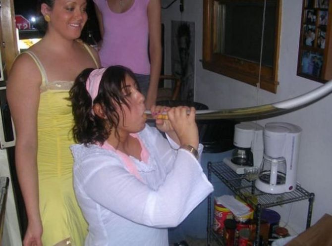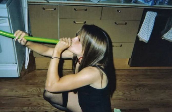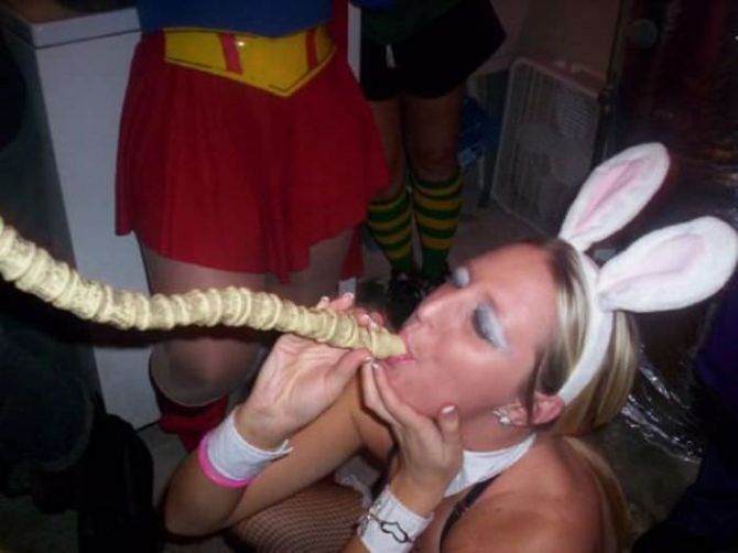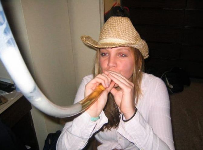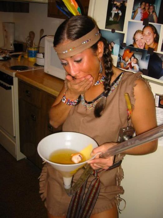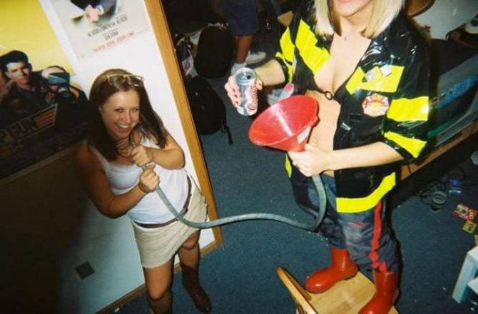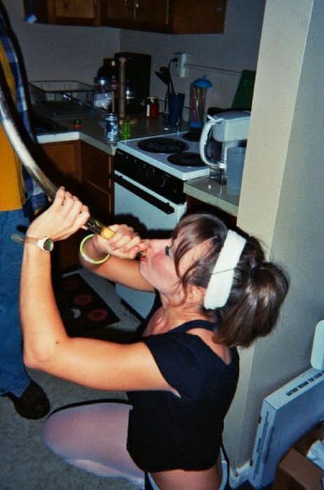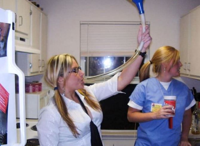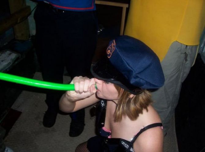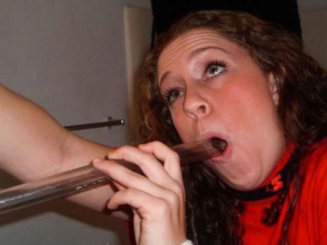 Пьяные девчонки на вечеринках пьют пиво из воронки.